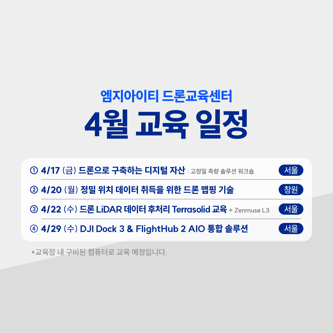 📢 엠지아이티 드론교육센터의 4월 교육 일정과 커리큘럼을 안내드립니다.